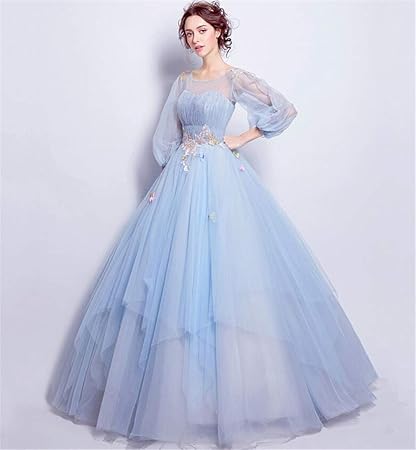 Amazon Com Elegence Z Wedding Dress Light Blue Round Neck Long | Download
