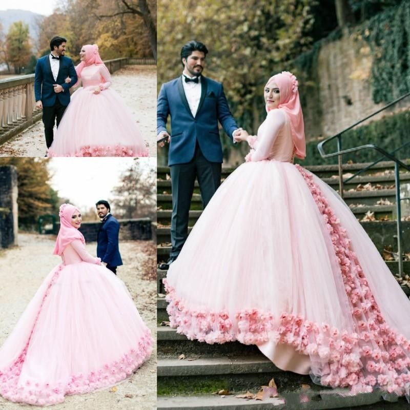 Muslim Ball Gown Color Wedding Dresses 2017 Crew Long Sleeves 3d | Download