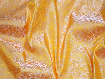 Amazon Com Yellow Banarasi Indian Brocade Jacquard Fabric Wedding | Download