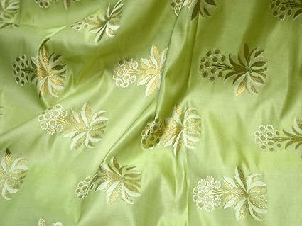 Indian Pistachio Brocade Fabric By The Yard Banarasi Fabric Wedding | Download
