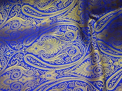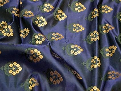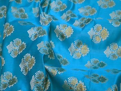 Amazon Com Indian Blue Varanasi Brocade Fabric By The Yard Banaras | Download