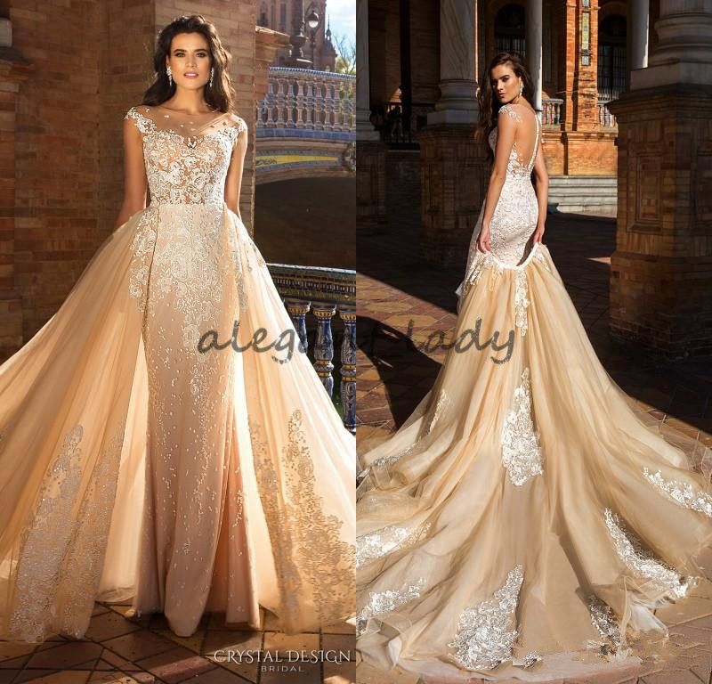 Champagne Sexy Lace Applique Castle Civil Mermaid Wedding Dresses | Download