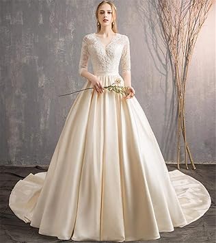 C V Satin Ball Gown Wedding Dresses Europe 2018 Long Sleeve Court | Download