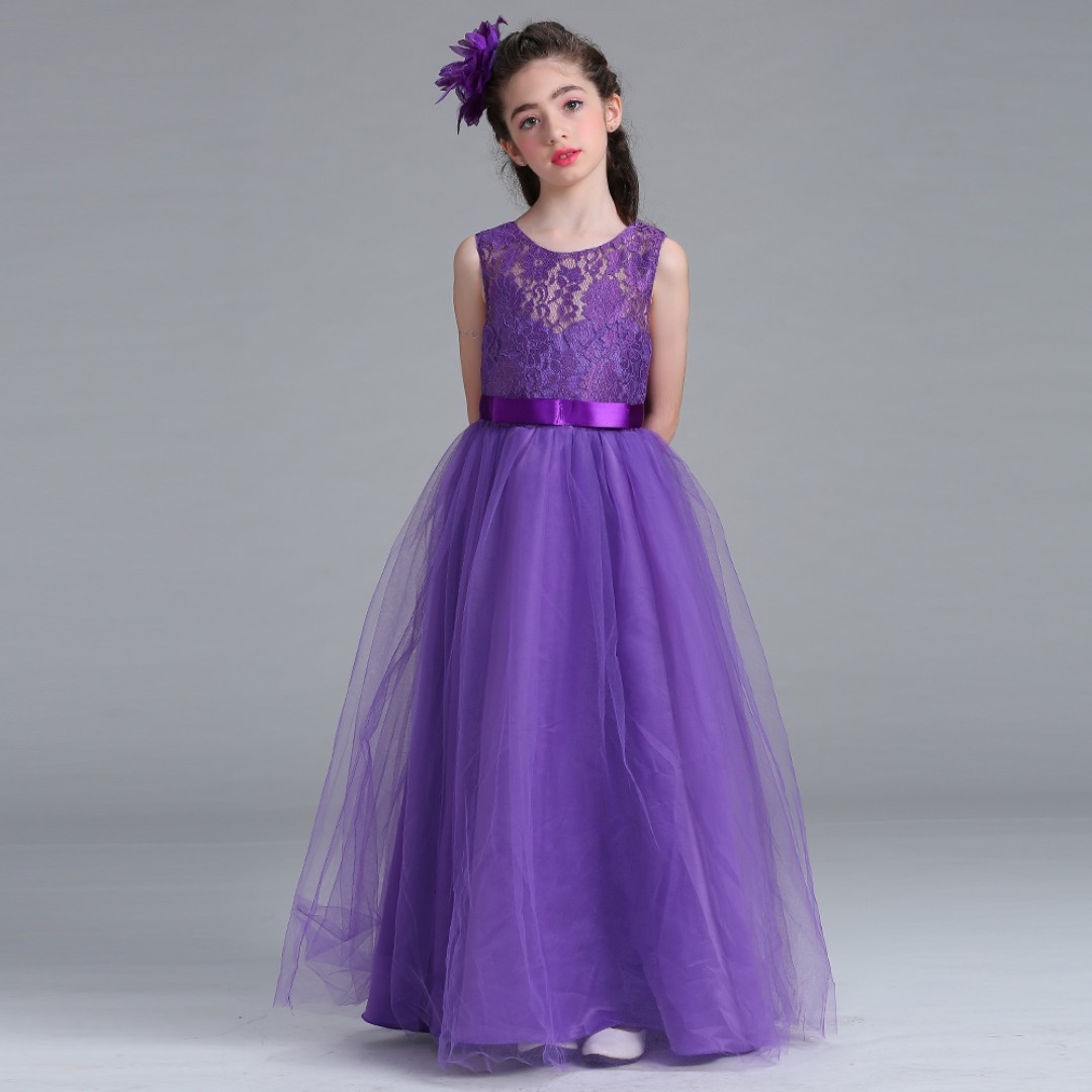 Princess Flower Girl Lace Long Gown Wedding Dress Purple 3 12 Years Old | Download