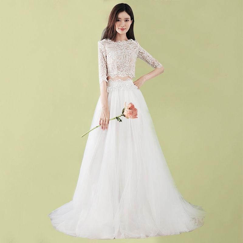 Fashion Two Pieces Wedding Dresses 2018 Korea Fashion Half Sleeves | Download