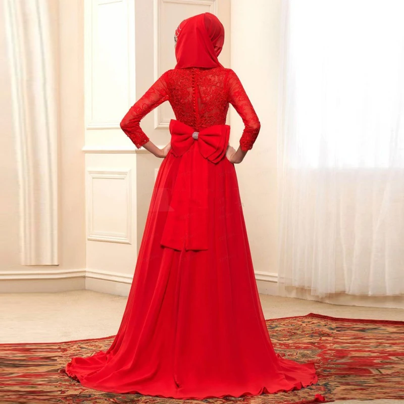 Arabic Muslim A Line Wedding Dresses Red Colour Long Sleeve High | Download