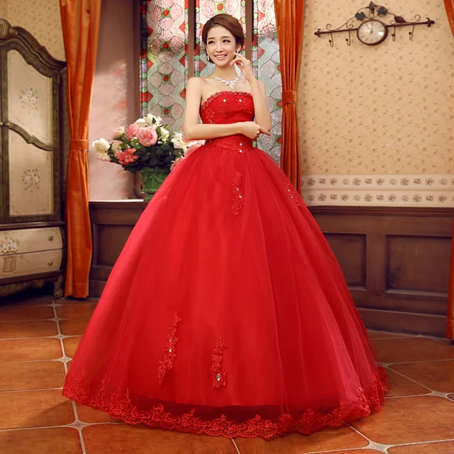 Fashion Strapless A Line Red Ball Gown Plus Size Wedding Dresses | Download